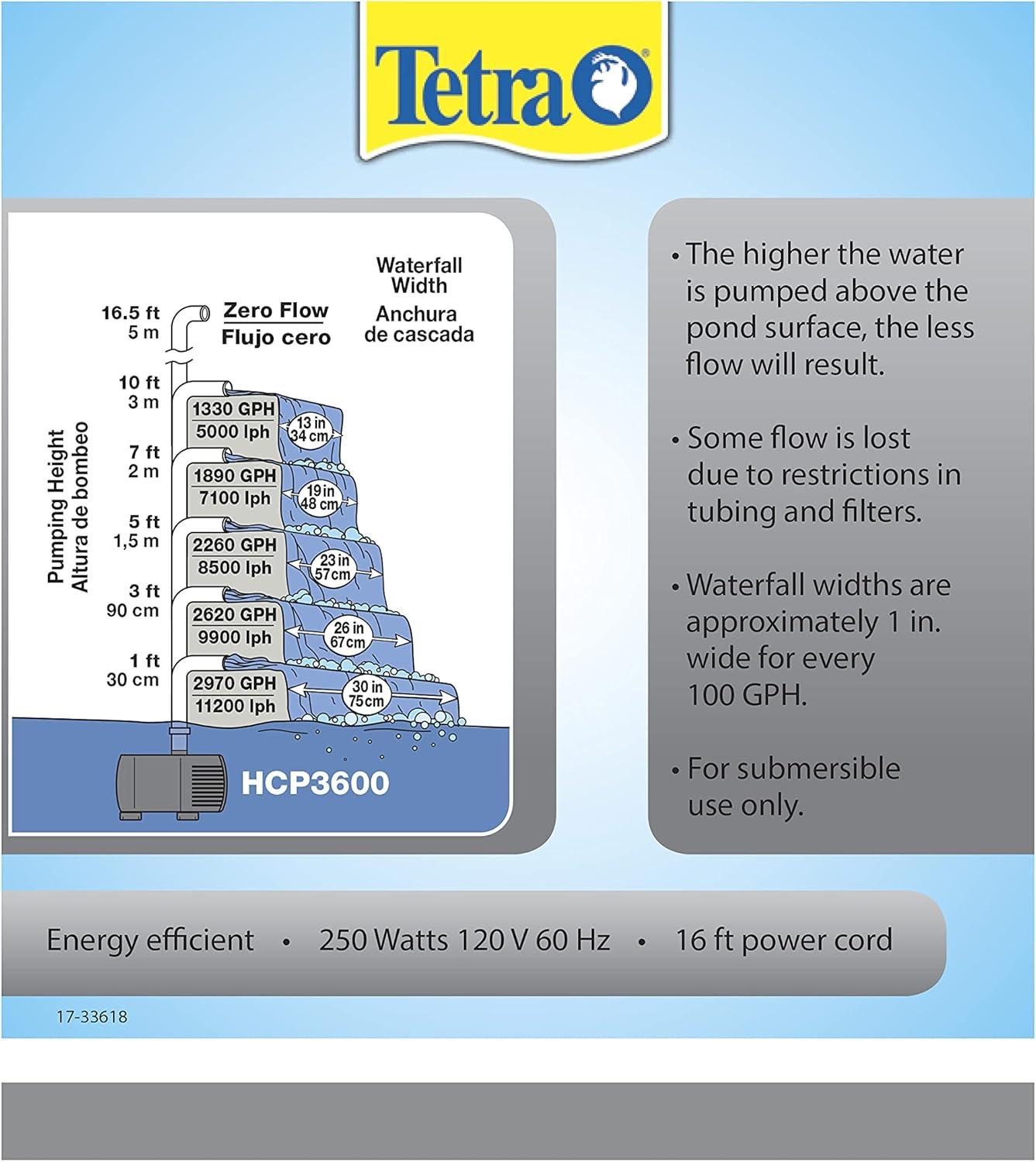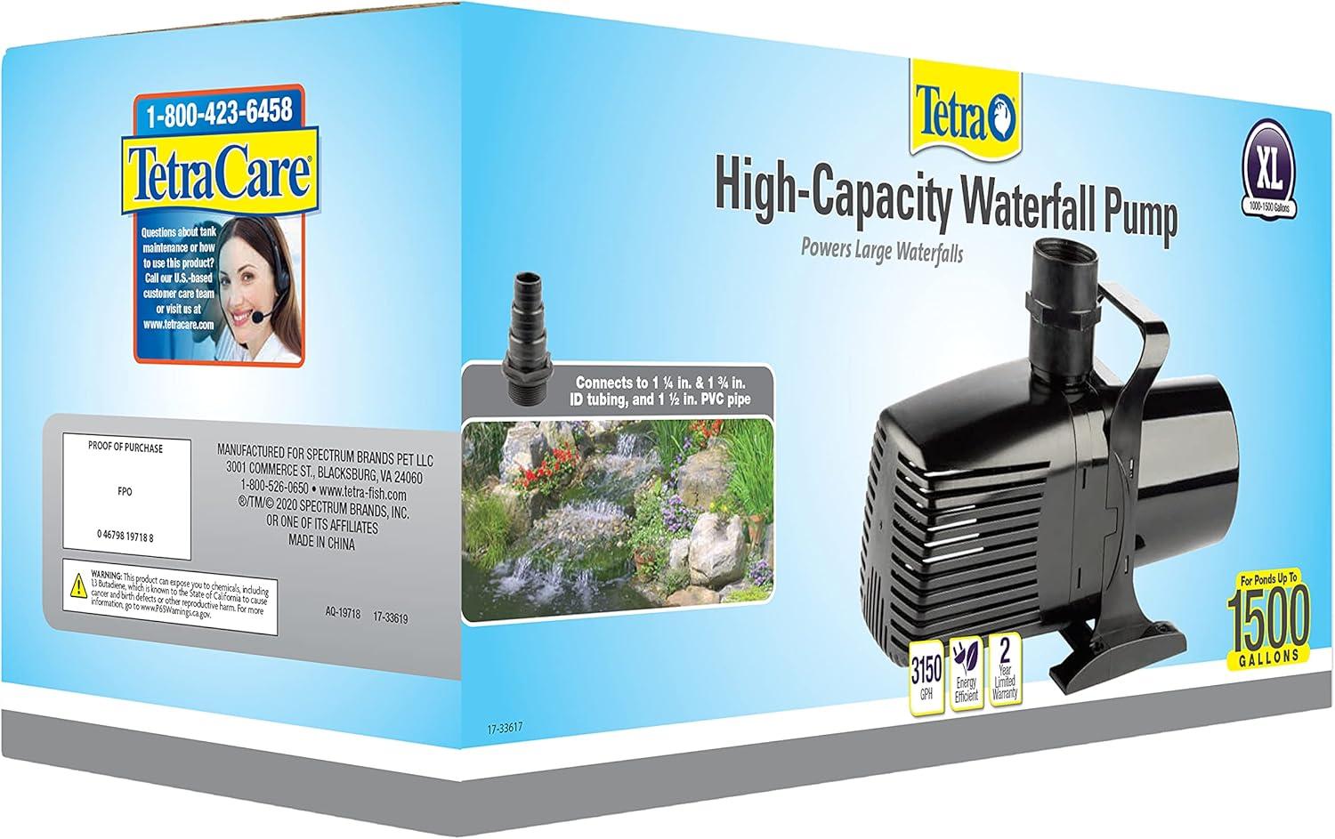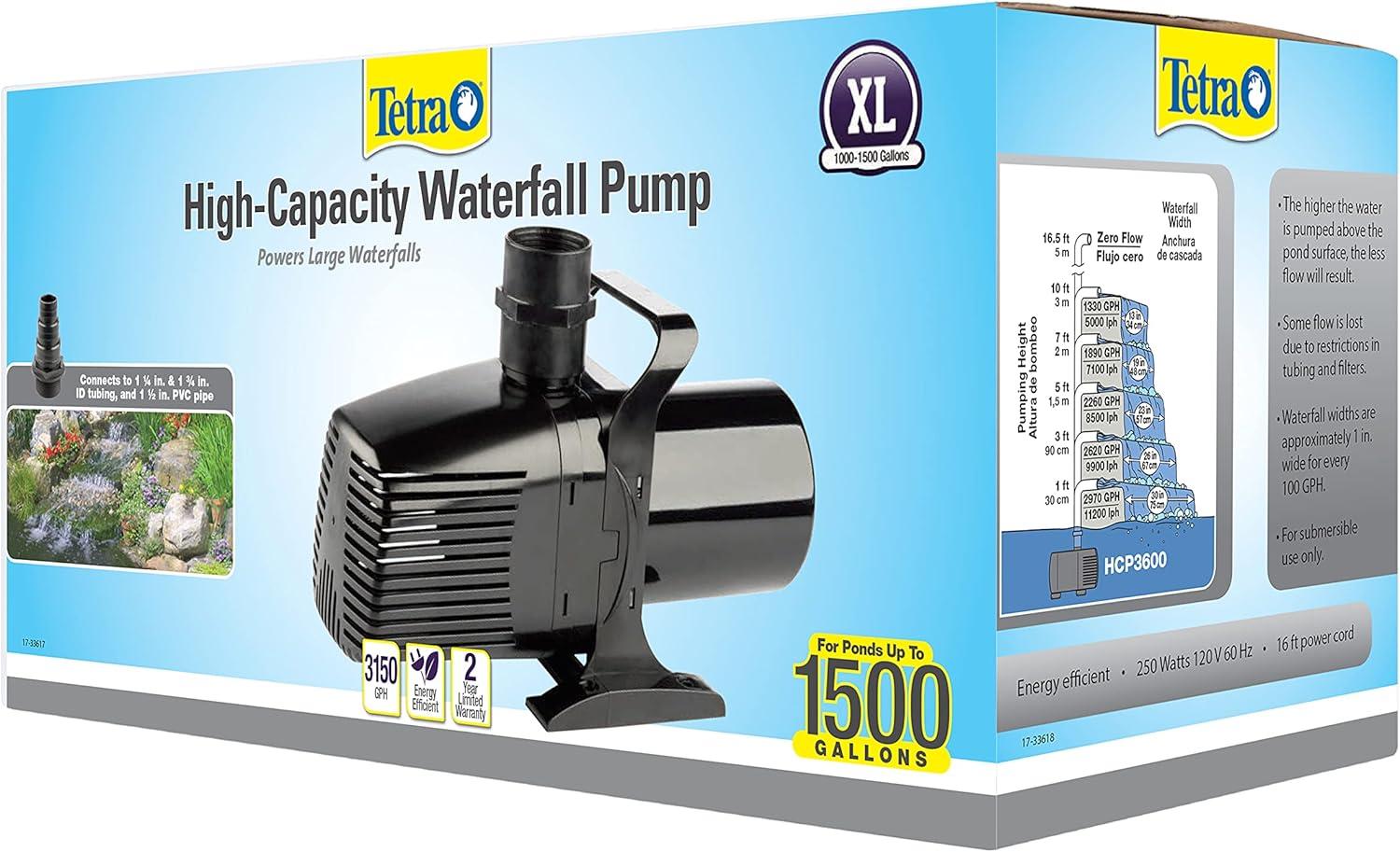Tetra 14941 pond Waterfall Pump for Ponds, Debris 3150 Gph Handling Pump High Capacity,Ponds Up to 1500 Gallons