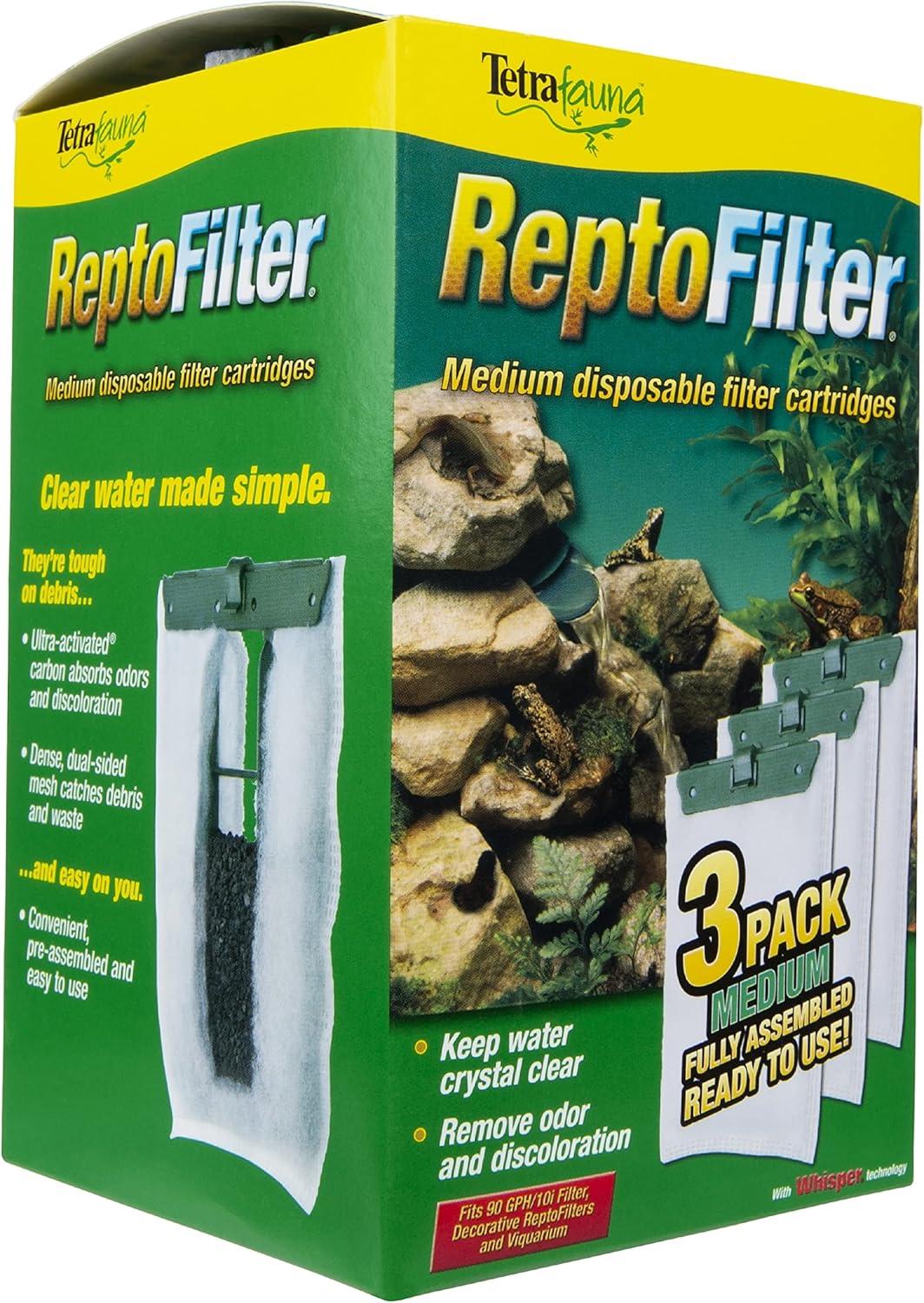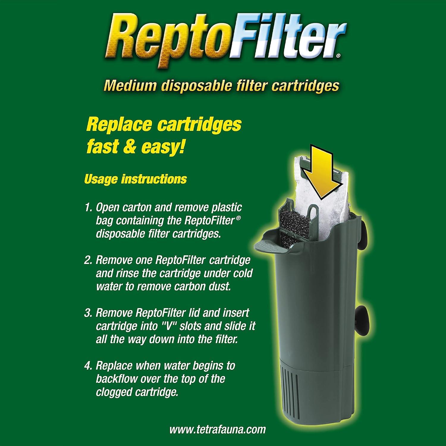 For 50 year, fishkeeping enthusiasts have looked to the Tetra name for products and solutions that add ease and beauty to their home. Whether you're an experienced hobbyist or just starting out, Tetra has everything you need–-from a large variety of quality fish food and innovative equipment to test kits and decor. Tetra is a name you can trust in the aquatics industry. With decades of proven performance and high quality products it’s no wonder Tetra is the go to brand for aquatic beginners and veterans alike. Tetra fauna ReptoFilter Cartridges keep your water crystal clear. ReptoFilter disposable filter cartridges use dense, dual-sided mesh to catch debris and waste while the Ultra-activated carbon absorbs odors and discoloration. Pre-assembled, these cartridges are convenient and easy to use. Create a clean environment for your reptile to enjoy. Make your terrarium the focal point of any room. Medium cartridges fit the ReptoFilter 90GPH, Viquarium, and the Decorative ReptoFilter.