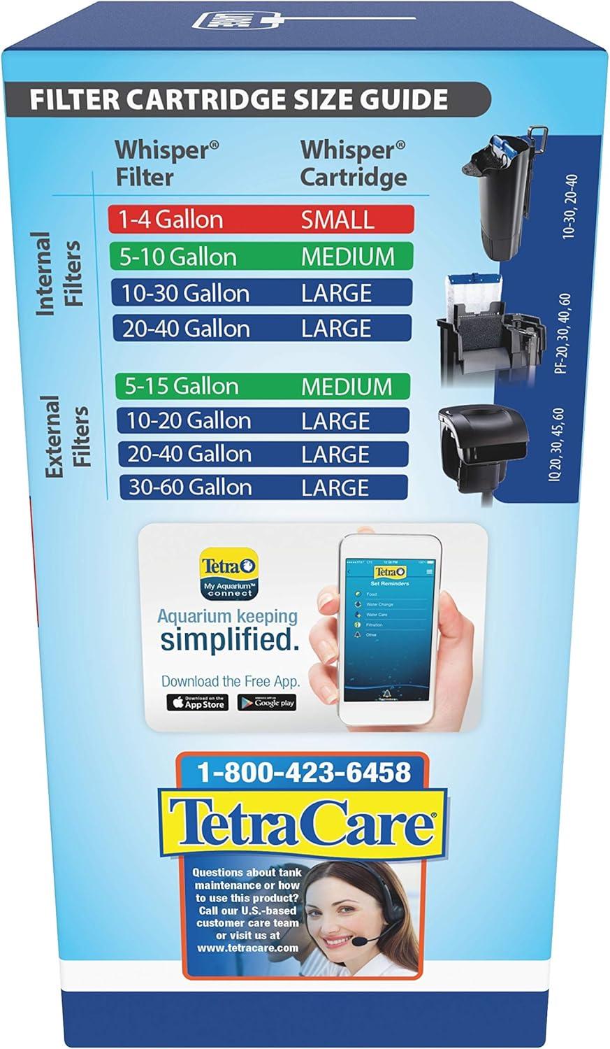 Tetra® Bio-Bag® Filter Cartridge with Stay Clean™ technology keeps aquarium water clean and clear. This filter’s dual-sided floss sleeve removes dirt and debris and contains Ultra-Activated® carbon to remove odor and discoloration. Its integrated design also includes a Stay Clean tablet that dissolves steadily over time, leaving you with healthier water and cleaner aquarium glass. Stay Clean technology helps reduce buildup on aquarium glass, bind small dirt particles to make them easier to filter and stabilize pH levels to prevent crashes – meaning easier aquarium maintenance for you. Tetra Bio-Bag Filter Cartridges are compatible with Tetra Bio-Bag aquarium filters – each package is color-coded to make it simple to remember which size to purchase. These replacement filters are assembled and ready to use for your convenience. This large-size filter cartridge fits Tetra Whisper® 20i and 40i Internal Filters, Whisper PF20, PF30, PF40 and PF60 Power Filters and Whisper IQ20, IQ30, IQ45 and IQ60 Power Filters. For best results, change your filter cartridge monthly or sooner if needed. Since 1951, Tetra has developed the world’s most comprehensive body of fish food knowledge, and fishkeeping enthusiasts have looked to the brand for products and solutions that add ease and beauty to their home. Whether you're an experienced hobbyist or just starting out, Tetra has everything you need – from a large variety of quality fish food and innovative equipment to test kits and decor.