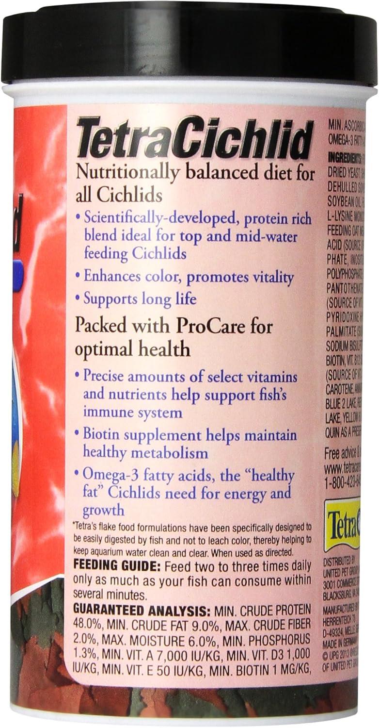 For 50 year, fishkeeping enthusiasts have looked to the Tetra name for products and solutions that add ease and beauty to their home. Whether you're an experienced hobbyist or just starting out, Tetra has everything you need–-from a large variety of quality fish food and innovative equipment to test kits and decor. Now Cichlids can enjoy the benefits of Tetra’s unparalleled advanced technology feeds (maximum nutrition, feeding convenience, improved tank clarity) with a higher vegetable content. Firmer than flakes, each Cichlid crisp is half green (concentrated algae extract) and half beige (Cichlid staple). Despite high protein and fat content the clear water formulation will not cloud water.TetraCichlid Cichlid Crisps provide consistency in feeding with their uniform size. Each crisp has concentrated nutrition, ideal for top and mid-water feeding Cichlids. Crisps combine Algae extract for natural feeding and essential nutrition through staple Cichlid food, made with superior and highly digestible ingredients.