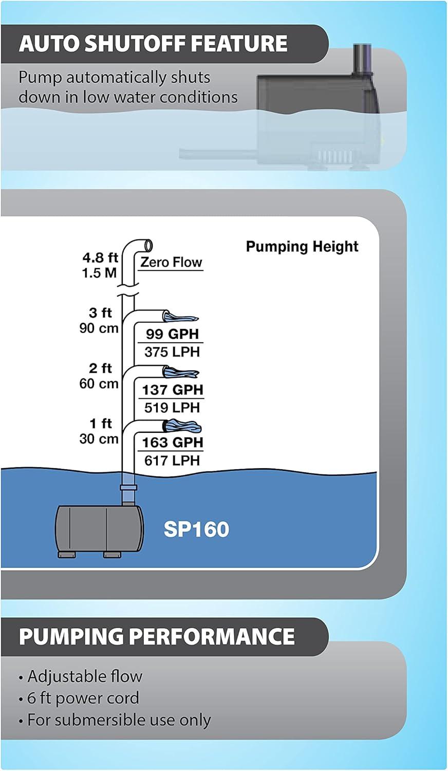 Tetra Pond Statuary Pump for Indoor & Outdoor Ponds & Fountains(160 Gallon Per Hour)