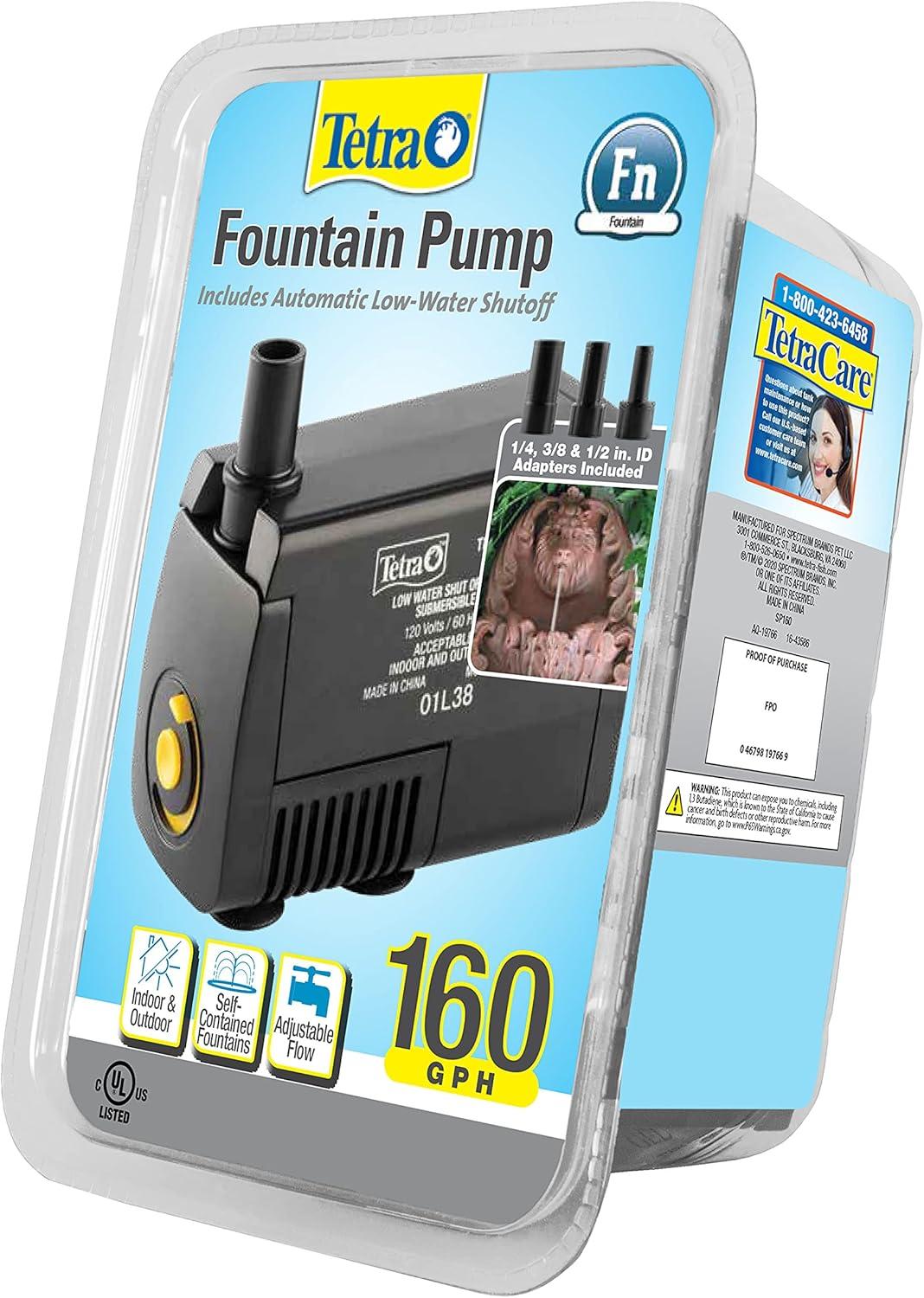For 50 year, fishkeeping enthusiasts have looked to the Tetra name for products and solutions that add ease and beauty to their home. Whether you're an experienced hobbyist or just starting out, Tetra has everything you need–from a large variety of quality fish food and innovative equipment to test kits and decor. Setting up a pond can be a daunting task. Use a variety of TetraPond products to successfully set up a thriving pond environment. Tetra Statuary Pumps provide energy efficient pumping power for your statuary fountain. Statuary fountains (sold separately) add beauty and elegance to outdoor or indoor spaces and can mitigate bothersome noises in your pond. You can adjust the flow based on your personal preferences. The reliable magnetic drive technology works for 140 GPH. For indoor and outdoor self-contained fountains. Tetra Statuary Pumps include a 1-year limited warranty and all the benefits of TetraCare. The adapter is included: ¼, 3/8, ½ inch ID.