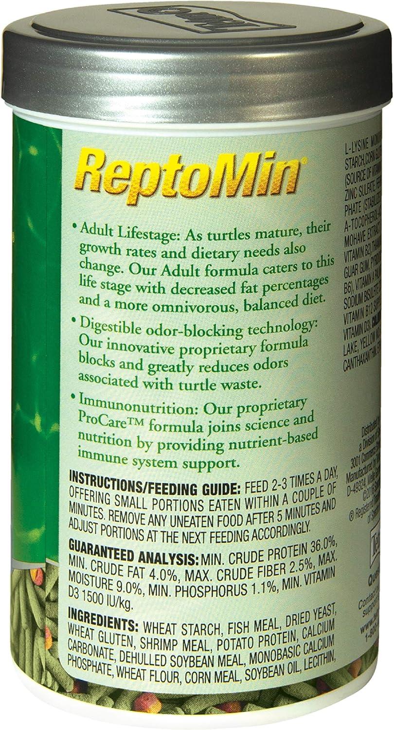 For 50 years, fishkeeping enthusiasts have looked to the Tetra name for products and solutions that add ease and beauty to their home. Whether you're an experienced hobbyist or just starting out, Tetra has everything you need–-from a large variety of quality fish food and innovative equipment to test kits and decor. As turtles mature, their growth rates and dietary needs also change. Our Adult formula caters to this life stage with decreased fat percentages and a more omnivorous, balanced diet. The digestible odor-blocking technology is an innovative proprietary formula that blocks and greatly reduces odors associated with turtle waste. Our proprietary ProCare formula joins science and nutrition by providing nutrient-based immune system support. The 2-in-1 PRO medley provides additional protein for energy and an aroma and flavor turtles are attracted to. Feed 2-3 times a day, offering small portions eaten within a couple of minutes. Remove any uneaten food after 5 minutes and adjust portions at the next feeding accordingly.