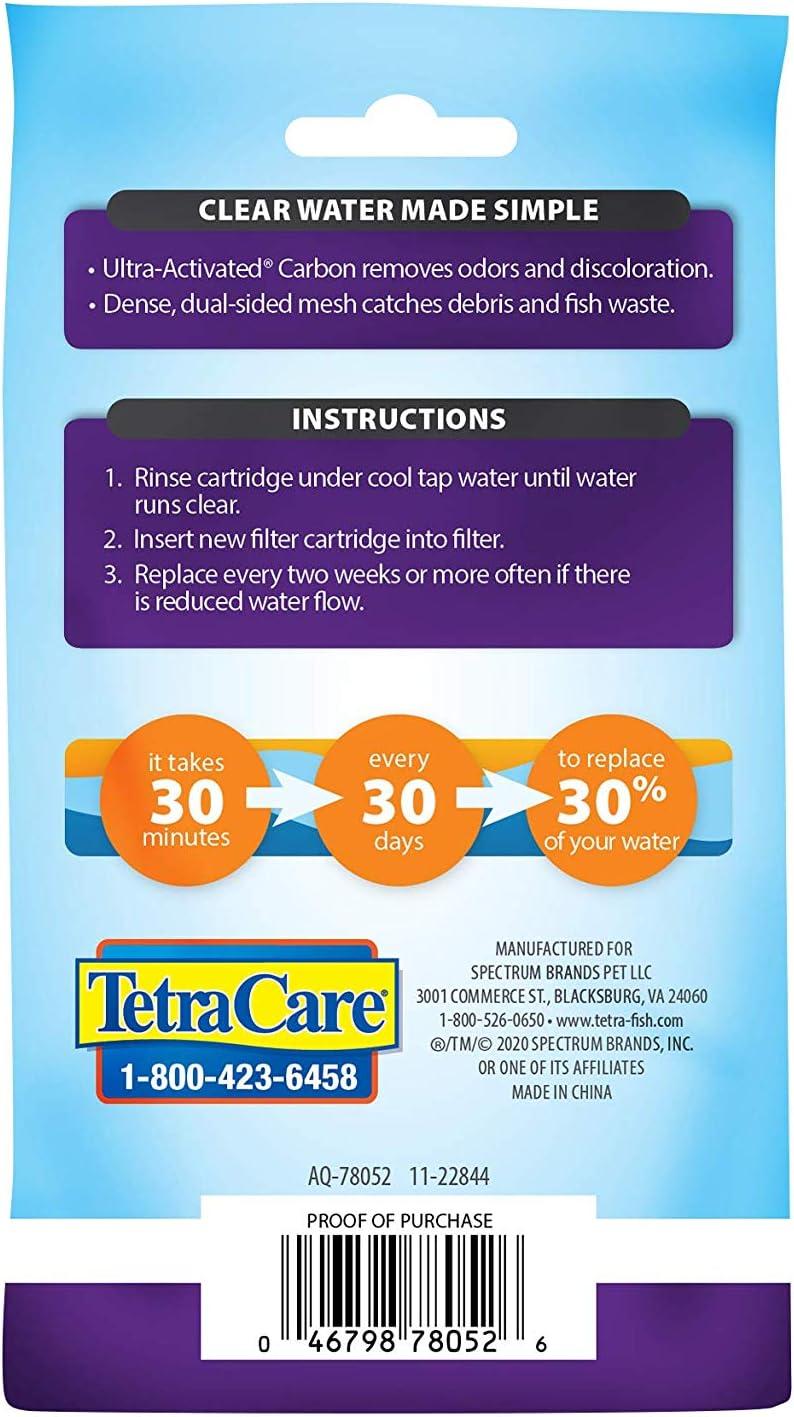 Tetra® Whisper® Filter Cartridges help keep aquarium water sparkling clean. The dual-sided mesh catches debris and fish waste, and Ultra-Activated® carbon removes odors and discoloration. Use these extra-small replacement filter cartridges in your AquaCulture® Aquarium Kit up to 3 gallons. These filters are ready to use for your convenience. To install, first rinse the cartridge under cool tap water until the water runs clear. Insert cartridge into the filter. For best results, change your filter cartridge every 2 weeks or more often if there is reduced water flow. Pack contains 4 extra-small replacement cartridges. An aquarium filter not only cleans the water your fish breathe, but it also keeps your tank looking pristine. Trust your tank to Tetra brand filtration products for cleaner, healthier water and happier fish! Since 1951, Tetra has developed the world’s most comprehensive body of fish food knowledge, and fishkeeping enthusiasts have looked to the brand for products and solutions that add ease and beauty to their home. Whether you're an experienced hobbyist or just starting out, Tetra has everything you need – from a large variety of quality fish food and innovative equipment to test kits and decor.