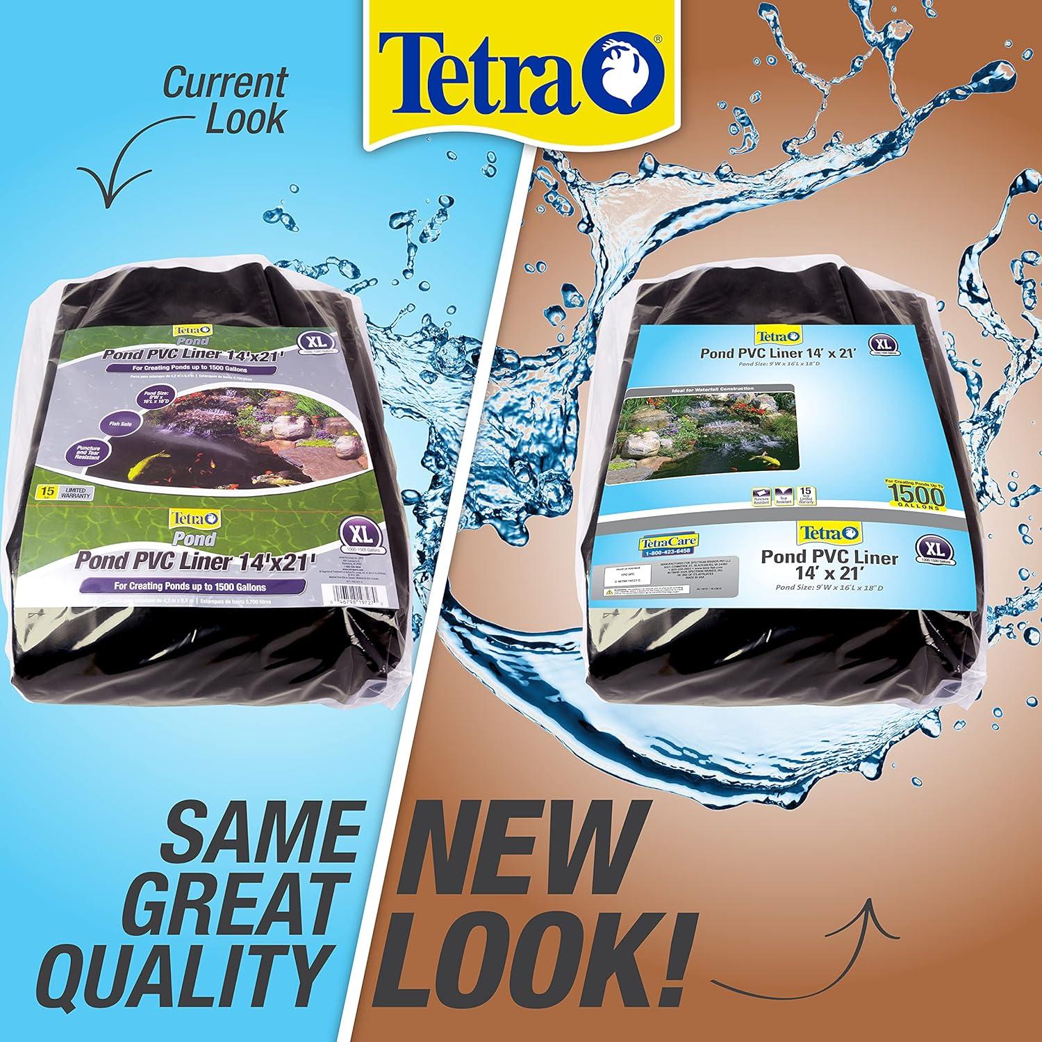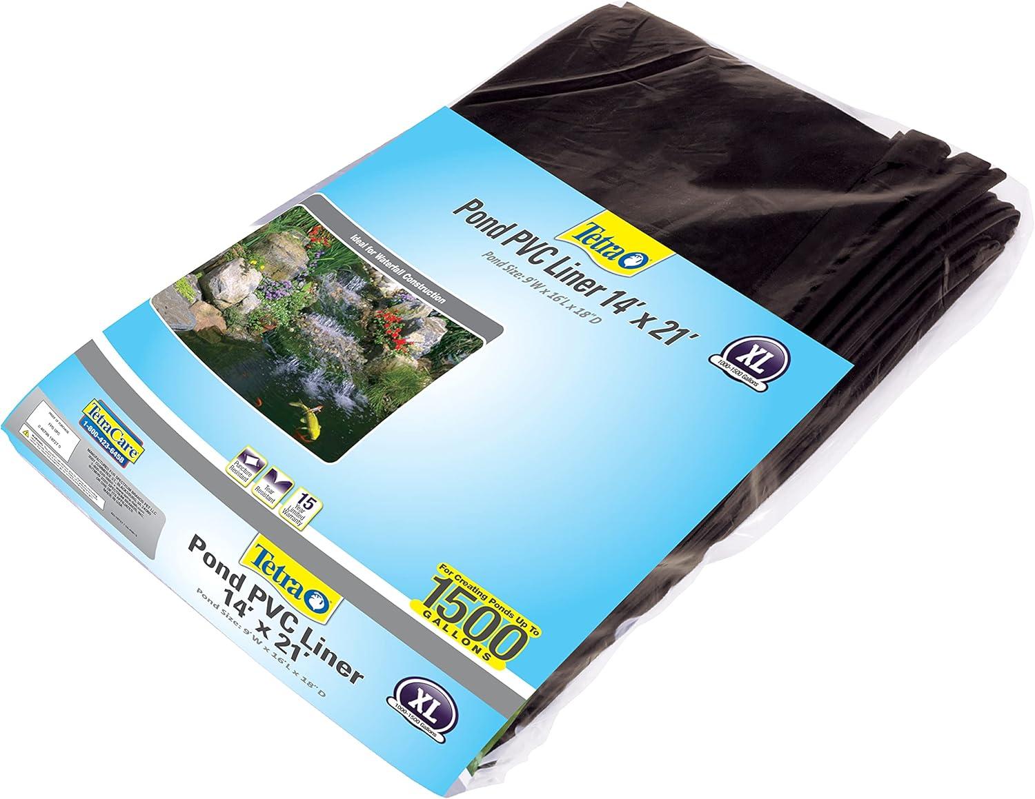 For 50 year, fishkeeping enthusiasts have looked to the Tetra name for products and solutions that add ease and beauty to their home. Whether you're an experienced hobbyist or just starting out, Tetra has everything you need–from a large variety of quality fish food and innovative equipment to test kits and decor. Tetra is a name you can trust in the aquatics industry. With decades of proven performance and high quality products it’s no wonder Tetra is the go to brand for aquatic beginners and veterans alike. This TetraPond PVC Liner measure 14' x 21'. Use this XL liner to create ponds up to 1500 gallons. Each liner is puncture and tear resistant so you can create a unique oasis that is all your own without having to worry. It is safe for fish and lets your create a pond 9'W x 16'L x 18″ D..